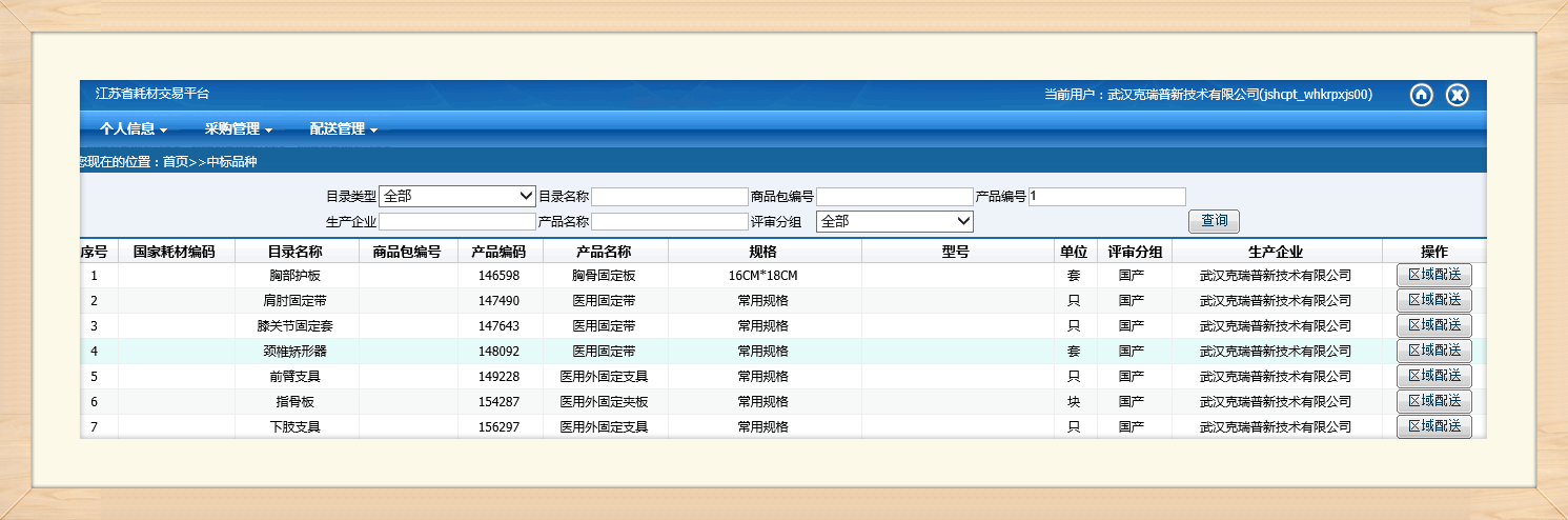 (江蘇省耗材交易平臺(tái)中標(biāo)產(chǎn)品部分截圖)