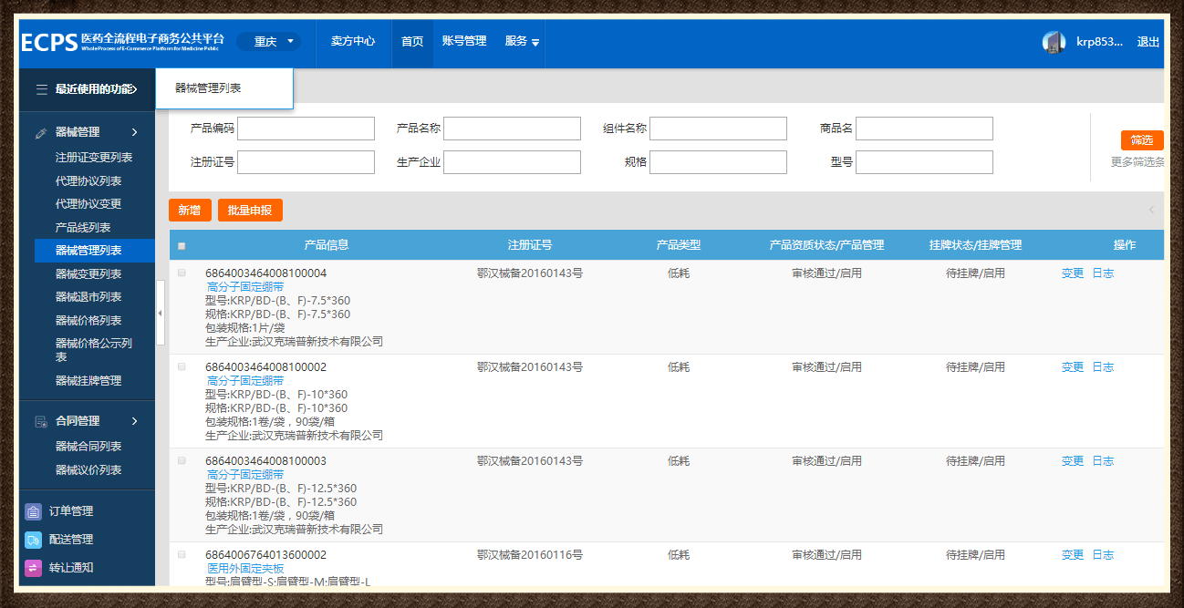 (重慶市醫(yī)藥電子商務(wù)公眾平臺(tái)審核通過(guò)產(chǎn)品部分截圖)