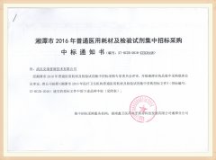 湖南省湘潭市2016年普通醫(yī)用耗材及檢驗(yàn)劑集中招標(biāo)采購(gòu)中標(biāo)通知書
